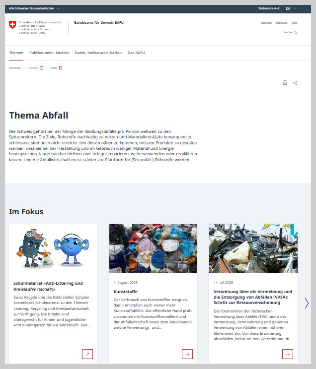 Bundesamt für Umwelt (BAFU) – Thema Abfall (Website)