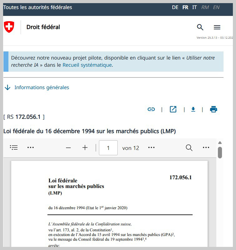 La loi fédérale sur les marchés publics dans sa version intégrale et online.Swiss Fair Trade