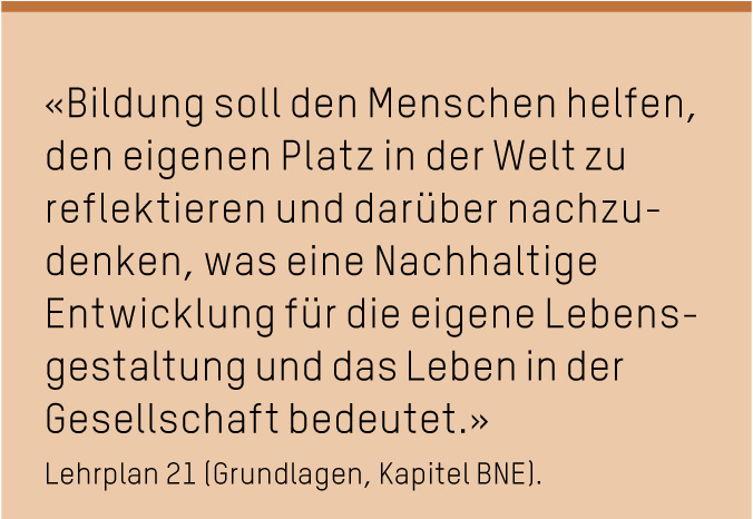 Detailliertere Informationen sind im Grundlagenkapitel „Bildung für Nachhaltige Entwicklung“ des Lehrplan 21 zu finden.