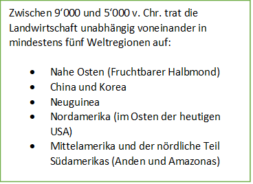 Die Domestikation von Gerste und Weizen begann zwischen 9'500 und 9'000 v. Chr. im Nahen Osten.