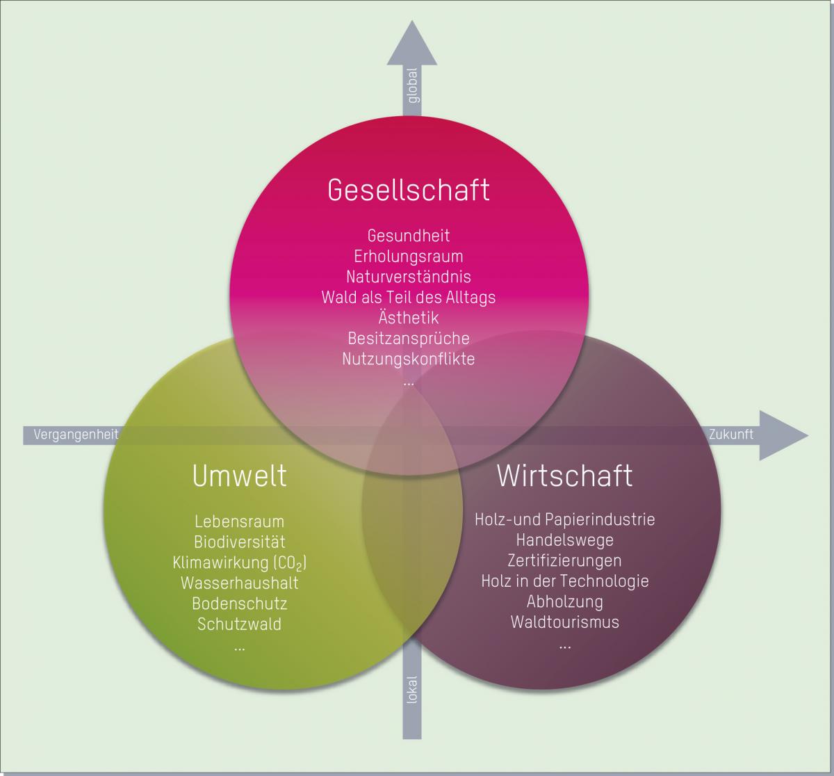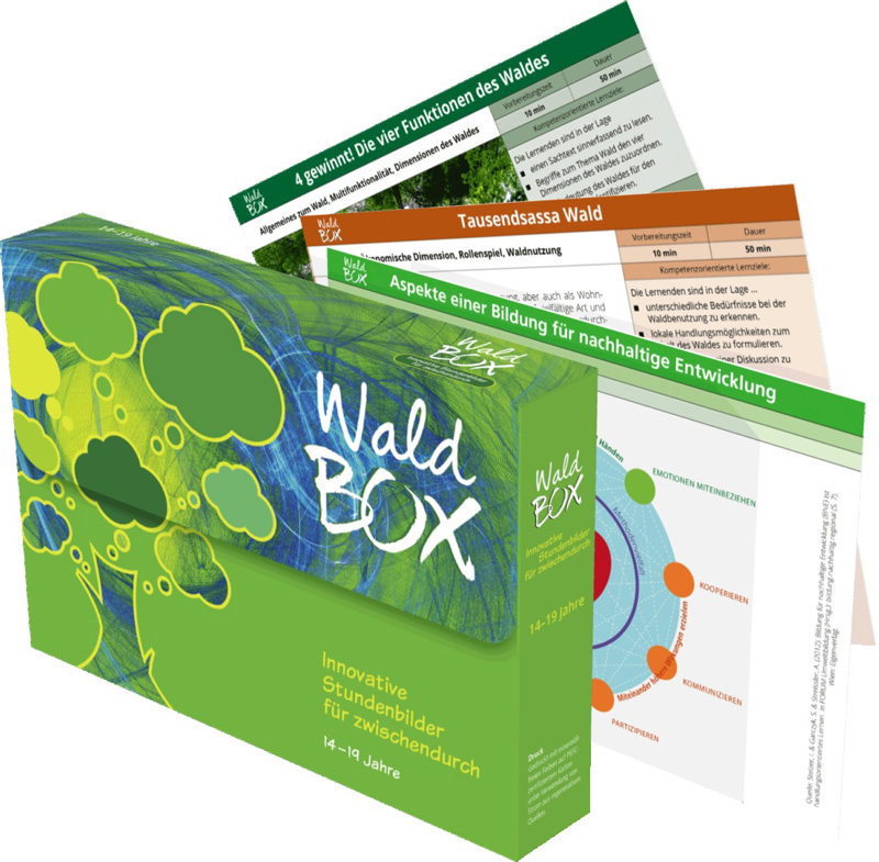 Auf spielerische Weise werden die Schülerinnen und Schüler an die Herausforderungen einer nachhaltigen Waldbewirtschaftung herangeführt. Zu Abschluss entwickeln sie eigene Visionen und Aktionen, um den Wald nachhaltig zu nutzen.Wald im Wandel
