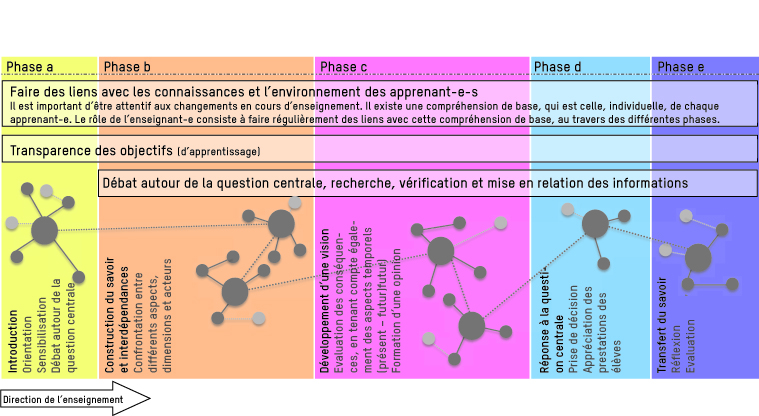 L'instrument «Environnements d'apprentissage EDD», avec ses 5 phases, soutient la construction de savoirs et permet d'aborder une situation sous plusieurs perspectives dans le sens de l'EDD.