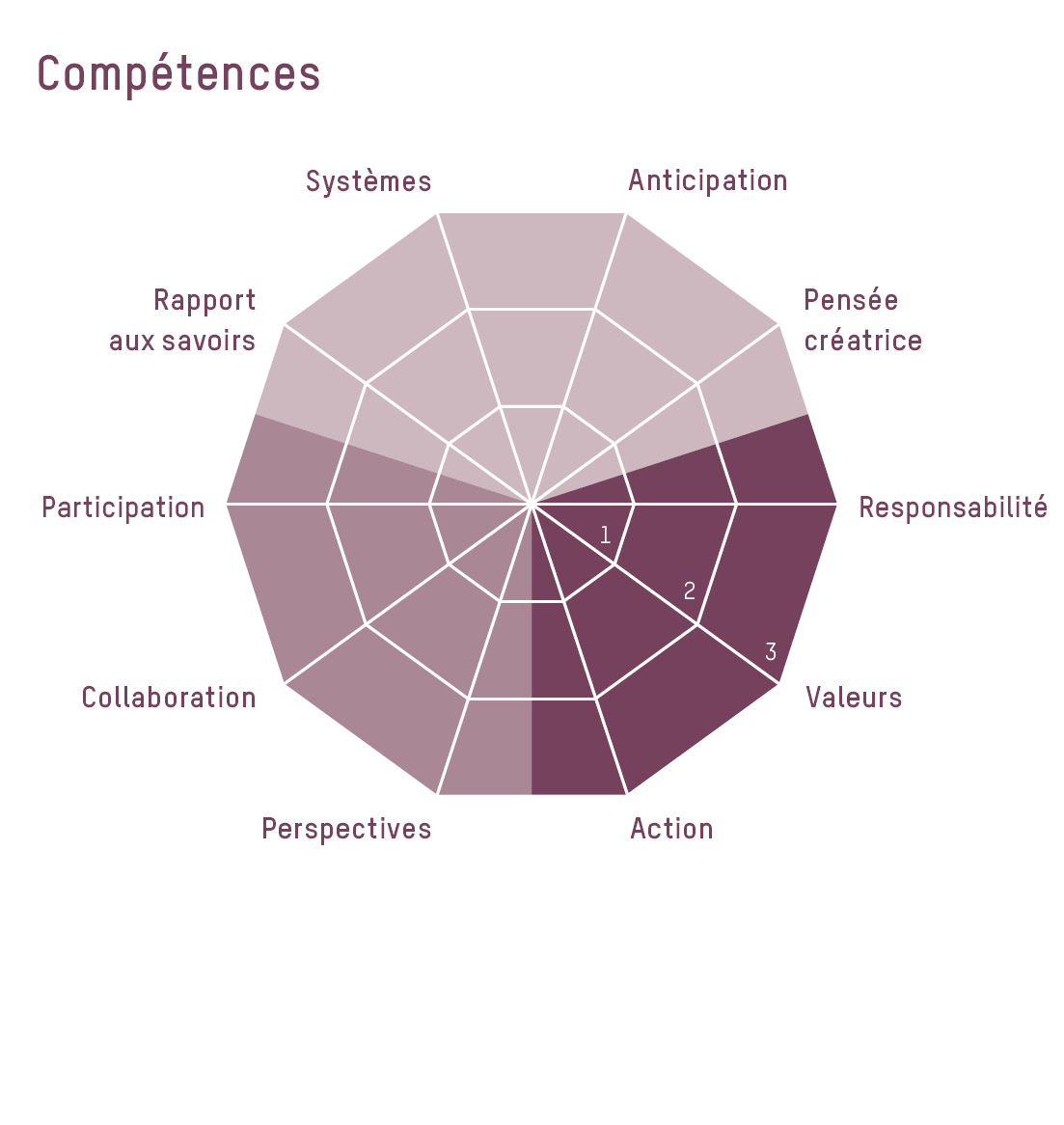 Les compétences EDD suivantes sont encouragées: changer de perspective, réfléchir à ses propres valeurs et à celles d’autrui, penser et agir avec prévoyance.