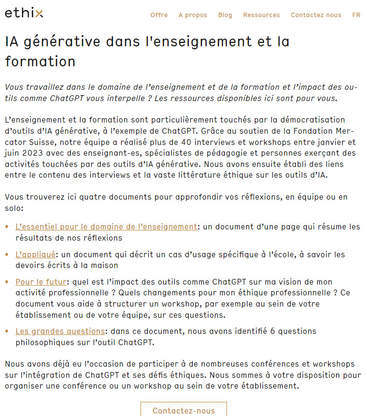 L’essentiel pour le domaine de l’enseignement: un document d’une page qui résume les résultats des réflexions issus des interviews et workshops menés par l'éditeur.