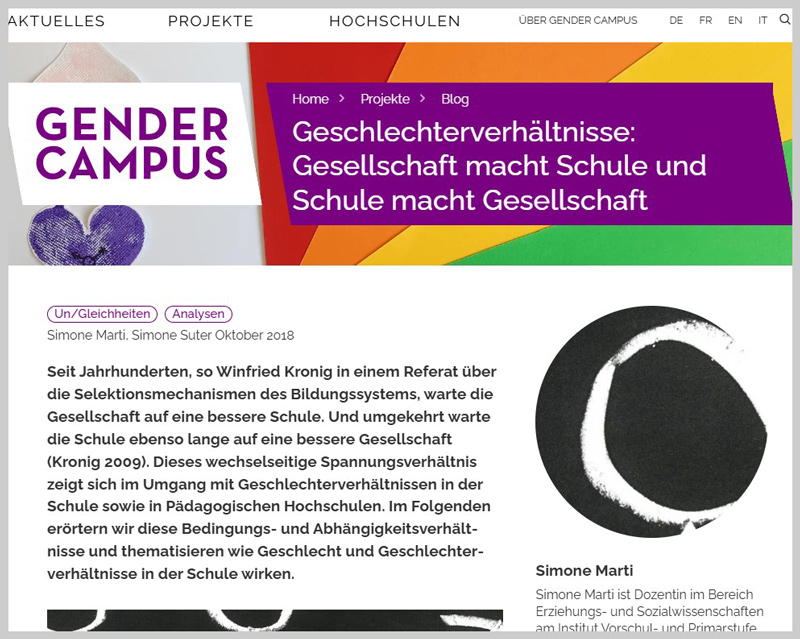 Wer bin ich? Wen begehre ich? Wie verhalte ich mich als Mann, wie als Frau und was, wenn ich mich mit diesen beiden Kategorien nicht wohl fühle? Welchen Beruf möchte ich lernen und wie stelle ich mir das Zusammenleben vor? Lernende finden in der Ausstellung, in Workshops und mittels didaktischer Materialien Antworten auf diese und andere Fragen. (ab sofort bis 31.10.21)Gender: Gesellschaft macht Schule und Schule macht Gesellschaft (Artikel)