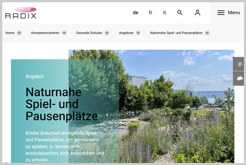 Die kostenlosen fixfertigen Lektionen nach Lehrplan 21 laden Lernende ein, Verantwortung für sich und die Umwelt zu übernehmen. Tipps für einen bewegten Unterricht, zur Pausenplatzgestaltung oder das Facility Management gemäss dem "Whole School Approach" sind ebenfalls auf der Homepage zu finden.Unsere Umwelt, unsere Gesundheit