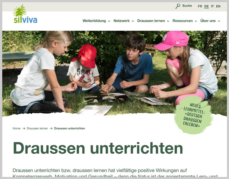 Das Dossier zeigt mit je einer Unterrichtsidee, wie Mathematik, Musik, Bewegung/Sport, Gestalten, Sprache und NMG draussen unterrichtet werden können. Die verwendeten Methoden fördern verschiedene BNE-Kompetenzen.Praxisbeispiele