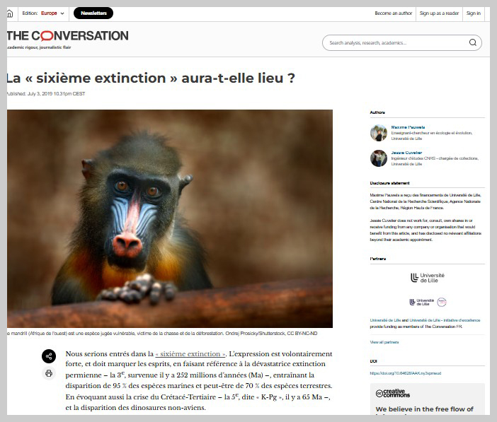 Article en ligne. Réflexion sur la difficulté pour un scientifique de s’exprimer fermement sur l’avenir. Les prospectives scientifiques impliquent des hypothèses que seul le temps pourra ou non confirmer. En ce sens, extrapoler à partir de la crise de biodiversité actuelle pour conclure définitivement sur une extinction massive à venir manque de fondement scientifique. Parler de crise de la biodiversité paraît plus pertinent.Agroforesterie Enjeux et perspectives (17'17)