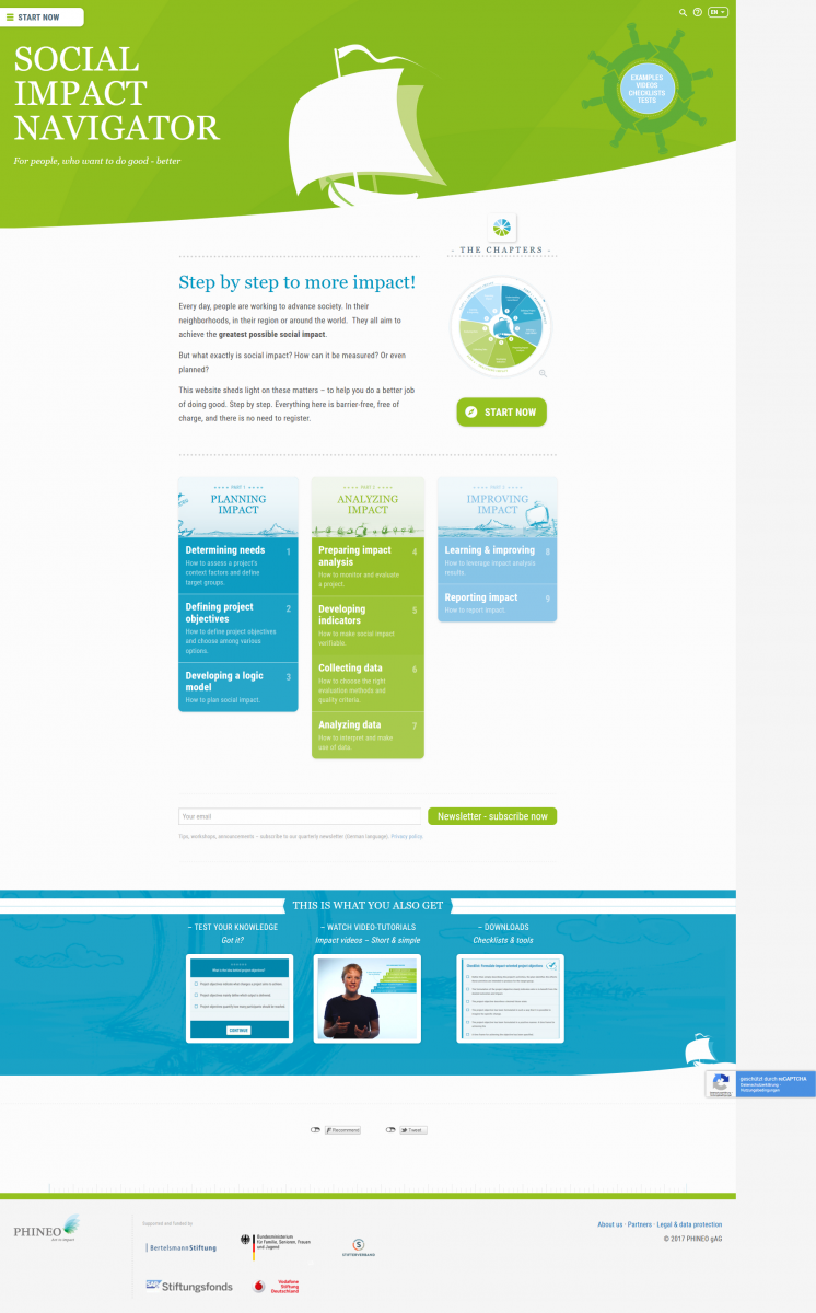 En complément du manuel de cours, Phineo propose le site d'apprentissage en ligne « Social Impact Navigator » en anglais. Les personnes intéressées parviennent pas à pas à obtenir davantage d'impact.