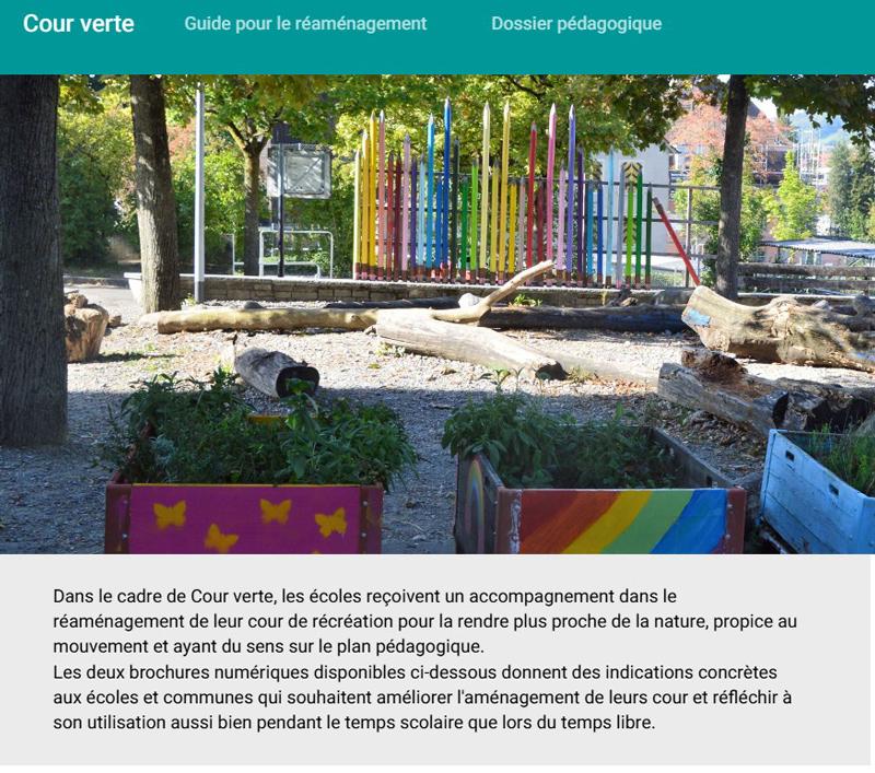 Ce dossier propose aux écoles un accompagnement pour réfléchir à l'utilisation et l'aménagement de leur cour de récréation pour la rendre plus proche de la nature, propice au mouvement et ayant du sens sur le plan pédagogique.