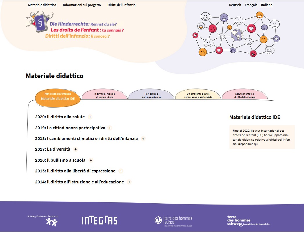 Con un tema centrale che cambia ogni anno, Integras, Terre des Hommes Svizzera e la Fondazione Villaggio Pestalozzi per bambini collaborano per produrre un dossier sul tema dei diritti dei bambini. I materiali proposti sono disponibili per tutti i cicli della scuola dell’obbligo.Passeggiate partecipative