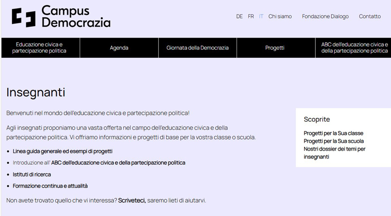 Partecipando attivamente alla vita scolastica e assumendosi responsabilità, in particolare nell'ambito dei consigli di classe o d'istituto, le allieve e gli allievi hanno l'opportunità di prendere concretamente parte alle decisioni che li riguardano. La scuola è un luogo ideale per familiarizzarsi con il dibattito democratico, con il confronto di opinioni diverse e argomentate e con l'acquisizione di conoscenze sui propri diritti e doveri.