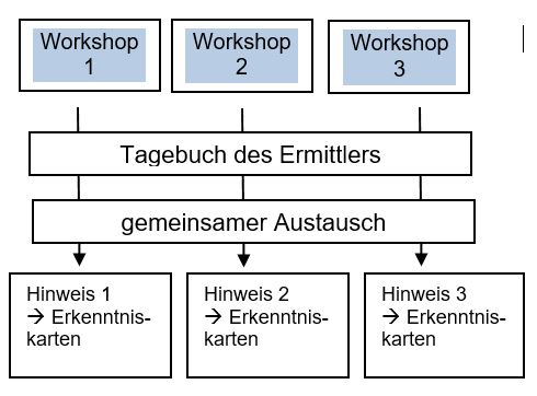 - Tagebuch des Ermittlers: zur Nachverfolgung der ausgeführten Arbeiten, der Quellen und Lernprozesse