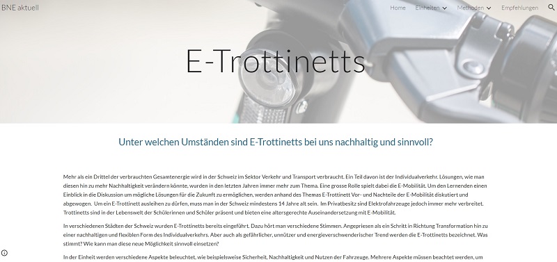 Im Fokus dieser Unterrichtseinheit (13 Lektionen) aus der BNE-Fabrik steht denn auch die Frage: Unter welchen Umständen sind E-Trottinetts bei uns nachhaltig und sinnvoll?