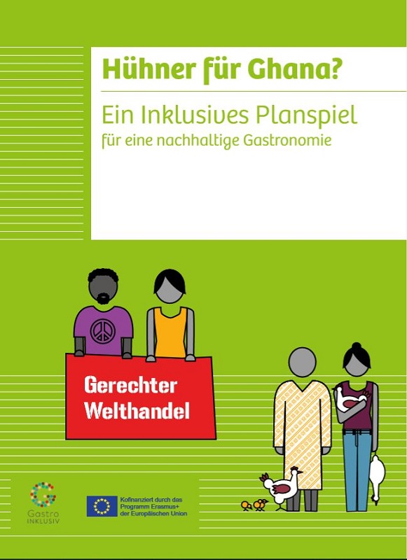 Pouletbrust ist sehr beliebt. Doch was passiert mit dem Rest des Huhns, der nicht verzehrt wird? Was viele nicht wissen: Die hier verschmähten Teile werden exportiert, z.B. nach Ghana, wo die lokalen Märkte mit billigem Geflügelfleisch überschwemmt werden. Im vorliegenden Planspiel – konzipiert für den Fachbereich Gastronomie – begeben sich die Lernenden in die Rolle verschiedener Akteure wie z.B. der ghanaischen Geflügelbäuer/-innen oder der EU-Agrarkommission und verhandeln über Bedingungen für weitere Importe. Durch die handlungsorientierte Methode werden die Lernenden motiviert, in politischen, sozialen, interkulturellen und anderen Zusammenhängen und Kontexten gezielt aktiv zu werden, Verhältnisse zu ändern und Lebens- und Arbeitsbezüge konstruktiv und realitätsbezogen zu gestalten. Sie befassen sich u.a. mit Fragen wie «Was habe ich damit zu tun?», «Wie kann ich durch mein Handeln etwas bewirken?» oder «Was hat das mit meinem Berufsalltag zu tun?»