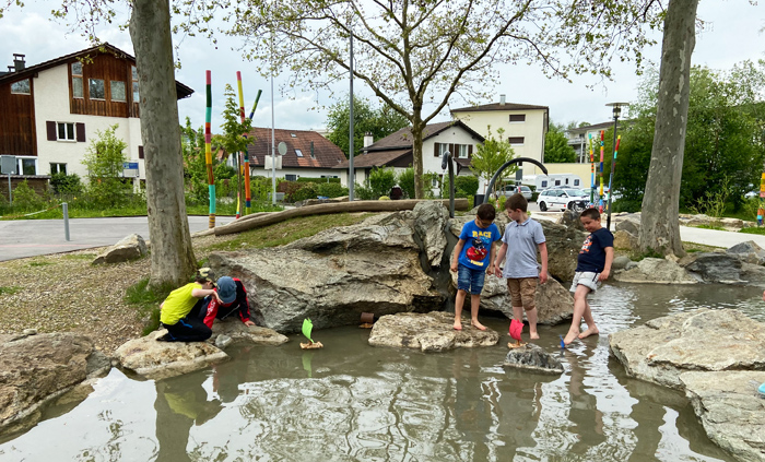 Der Schulhof wurde als grosses Gemeinschaftsprojekt entwickelt: Mit Gemeinde, Lehrer/innen, Eltern, Anwohner/innen und den Kindern, die ihre Wünsche äussern konnten.