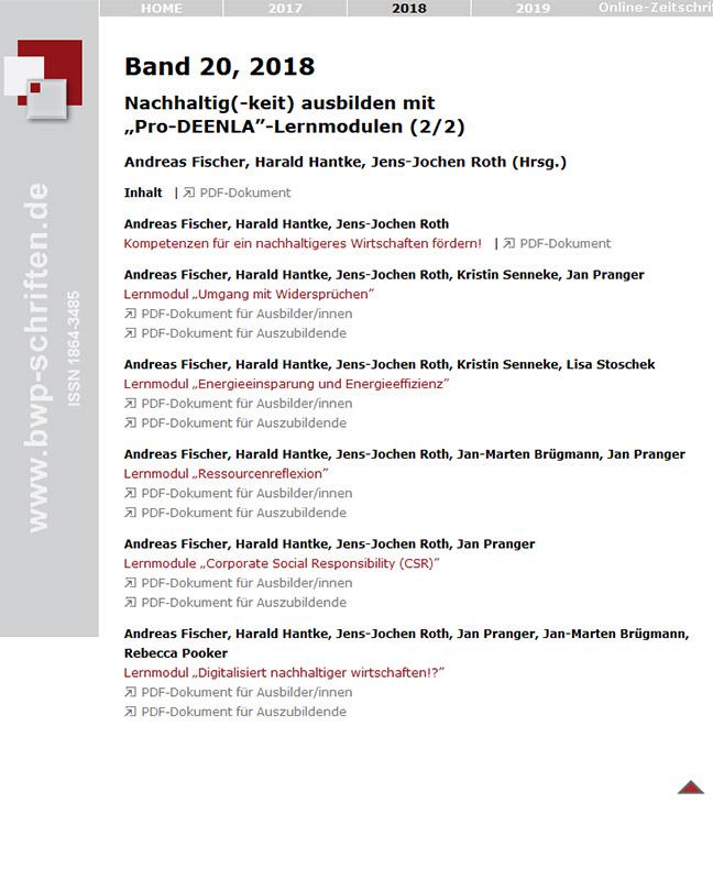 Band 19 der «Pro-DEENLA»-Lernmodule greift ökologische, ökonomische und soziale Auswirkungen unserer gegenwärtigen Arbeits- und Wirtschaftsweise auf. Die Lernaufgaben sind für den Einsatz in der betrieblichen Ausbildung zum Kaufmann / zur Kauffrau für Spedition und Logistikleistungen konzipiert worden. Dabei steht die Förderung von Kompetenzen für ein nachhaltig ausgerichtetes berufliches Handeln – sowohl des betrieblichen Berufsbildungspersonals als auch der Lernenden – im Mittelpunkt der Umsetzungsaktivitäten. Die Module Verkehr und Berichtspflicht beziehen sich (zu) stark auf Deutschland.