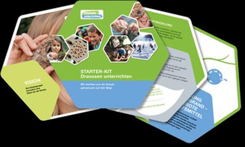 Das Kartenset inspiriert und unterstützt Schulleitungen und Lehrer/-innenteams auf dem Weg zu einer draussen unterrichtenden Schule. Mit den sechseckigen Karten können puzzleartig Gruppen gebildet, Visionen, Ziele und Massnahmen entwickelt und Rollen für Gruppenarbeiten gefunden werden. Ein Teil der Karten liefert konkrete Umsetzungsbeispiele und Unterstützungsideen.