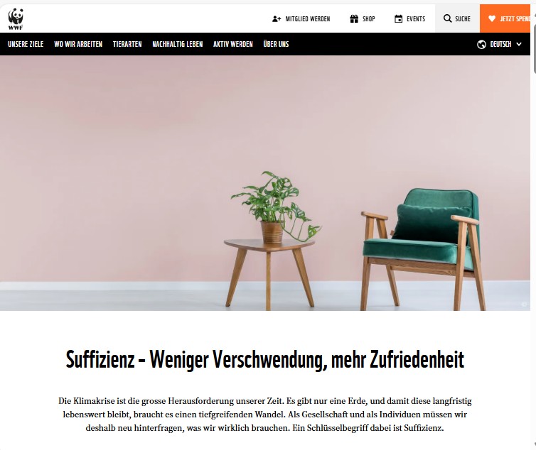 Die Website vereint Hintergrundinformationen, Testimonials, Tipps und Aktionsideen zum Thema Suffizienz. Stichworte: Zero Waste, weniger konsumieren, Tauschen und Teilen, Entrümpeln etc.