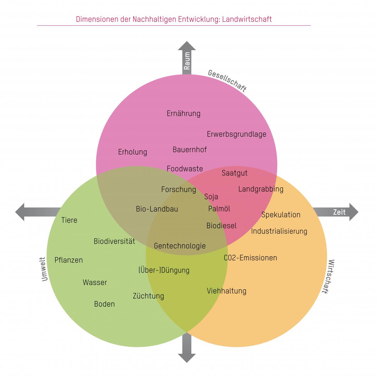 Das Thema Landwirtschaft soll interdisziplinär und mehrperspektivisch behandelt werden. Im Fokus steht zum einen die ökonomische Bedeutung der Landwirtschaft auf lokaler und globaler Ebene. Dabei sollen wichtige Akteure identifiziert und ihre Rolle im System diskutiert werden. Produktionsketten von spezifischen Lebensmitteln können dazu herausgearbeitet werden. Derer Einfluss auf die Umwelt und Gesellschaft ist zu reflektieren. Mögliche Konfliktpotentiale bieten idealen Anlass für schulinterne Debatten. Aus ökologischer Sicht sollen die Auswirkungen auf die umliegenden Ökosysteme untersucht werden, um Zukunftsvisionen für eine ökologische Landwirtschaft und/oder Ernährungssystem zu entwickeln. Verschiedene Fachdisziplinen wie Geografie, Geschichte, Wirtschaft und Recht, Mathematik, Biologie, Chemie, Physik können zur Bearbeitung komplexer BNE-Fragen beitragen.