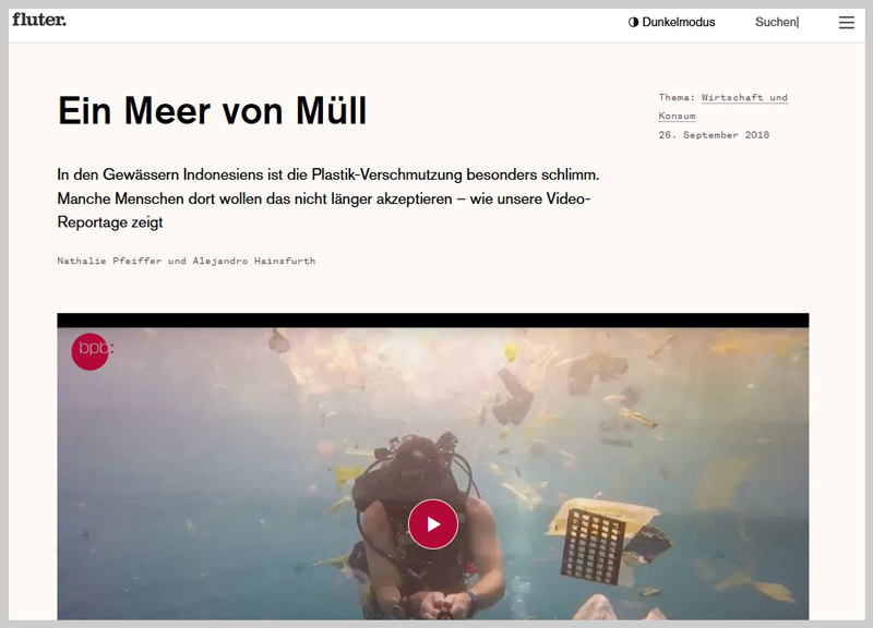 Der knapp zweiminütige Animationsfilm zeigt mit einer einfachen Geschichte, wie Abfälle und Plastikverschmutzung zur Gefahr für Meerestiere werden.Lernmedien