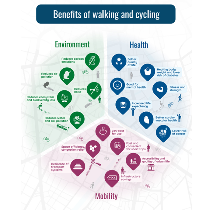 Neben der «Ernährung» spielt auch das Themenfeld «Mobilität» eine zentrale Rolle für die individuelle und planetare Gesundheit. Dazu werden die SuS angehalten, über ihr persönliches Mobilitätsverhalten nachzudenken, das Mobilitätsverhalten von früher mit dem heutigen zu vergleichen und die Folgen auf die Lebensqualität der Menschen sowie der Natur einzuschätzen (NMG 7.3).