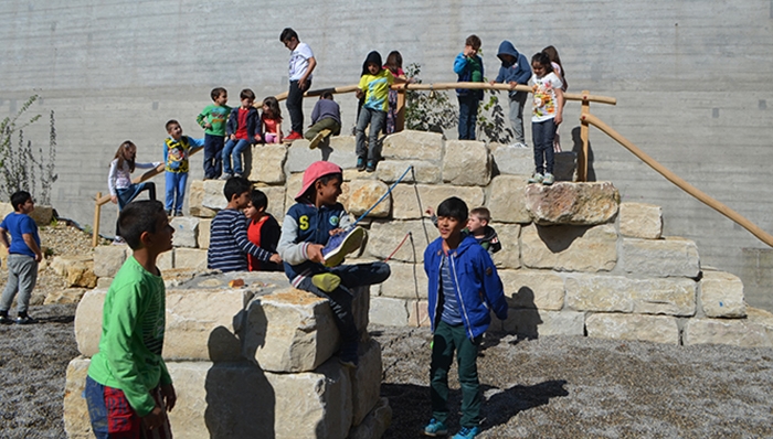 Die Schüler/innen von Floriane Nikles und andere Klassen lernten bei Spaziergängen, die extra für sie entwickelt wurden, alle Winkel der Stadt Lausanne kennen. Dabei ging es um viel mehr als nur das „Spazierengehen“: Die Schüler/innen eigneten sich interdisziplinäres Wissen an, konnten ihre Bewegungsmotorik entwickeln und steigerten ihre Kreativität, indem sie sich mit anderen austauschten.Terre-Lune, eine Schule die Leben ins Dorf bringt