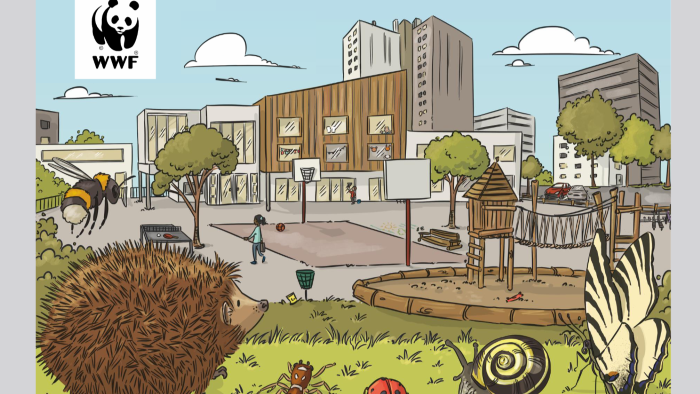 Neben verschiedenen Menschengruppen beleben auch diverse Tiere das Schulgelände. Aber wem gehört eigentlich das Schulareal? Und wer kann, darf oder möchte es wie nutzen? Neben der Vermittlung von Artenkenntnis führt das Lehrmedium hin zur Frage der Nutzung von Gemeingütern.
