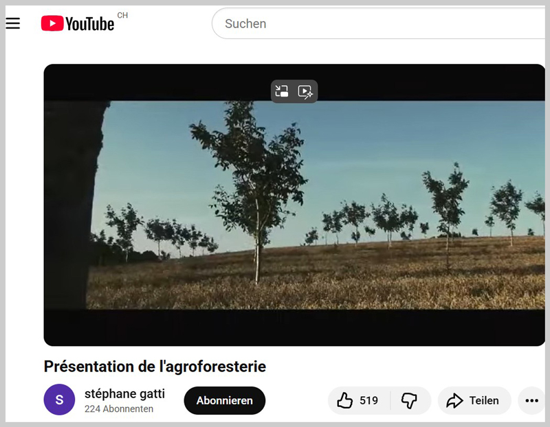 Une vidéo pour comprendre les enjeux essentiels de l'agroforesterie à travers des témoignages d'agriculteurs, l'apport de spécialistes. Le film aborde à la fois des questions de rendement économique, de changement d'approche, de pari sur l'avenir, de biodiversité, de reconnection aux lois de la nature, de services écosystémiques, ...Il montre également la volonté de certains de sortir d'un modèle imposé et leur remise en question.Agence d'information agricole romande AGIR