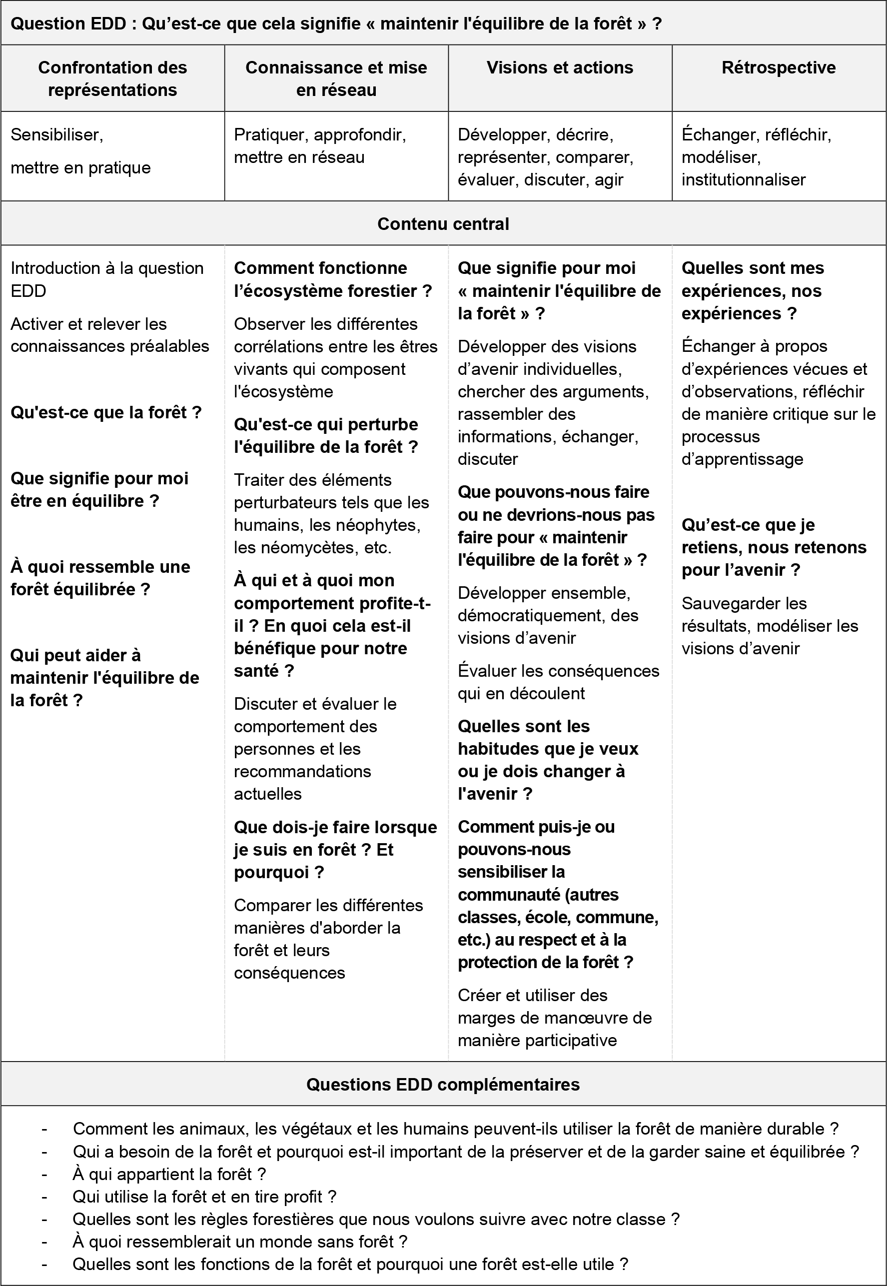 La pertinence EDD, les questions EDD et les informations de base sont également disponibles en téléchargement : dossier thématique Forêt: un équilibre naturel?