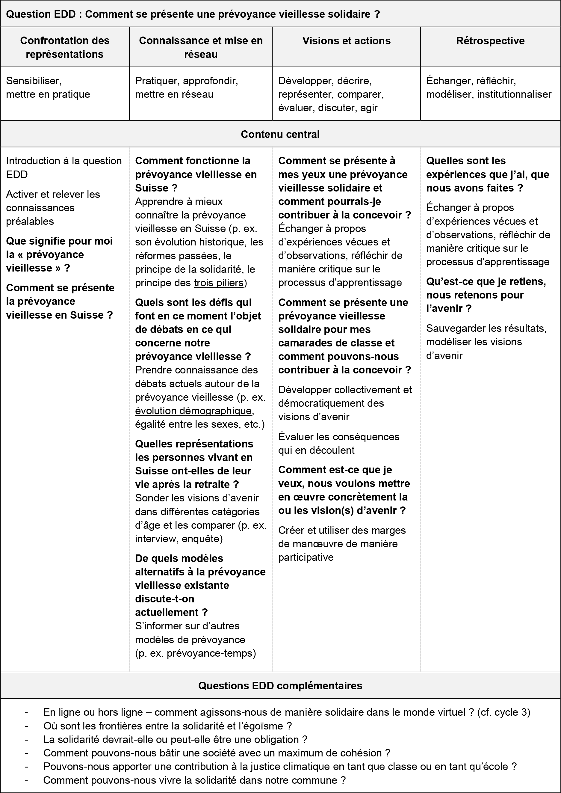 La pertinence EDD, les questions EDD et les informations de base sont également disponibles en téléchargement : dossier thématique Solidarité: un pacte social