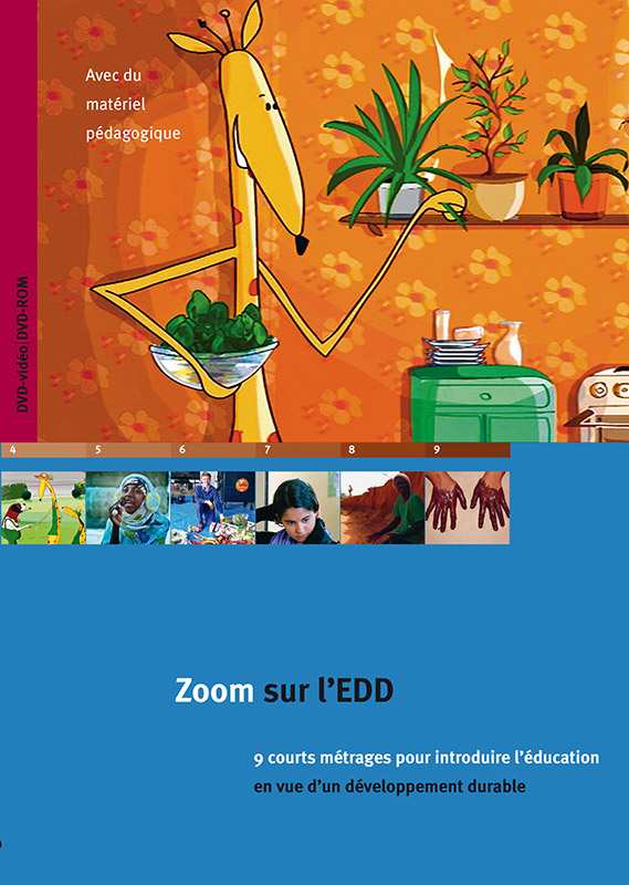 Ce DVD offre aux écoles et aux enseignant-e-s un outil d’apprentissage concret, original, aisé à utiliser, qui invite à découvrir l’EDD, facilite sa mise en application dans l’enseignement et encourage à développer les idées proposées. il illustre différentes facettes de l’EDD et en même temps les liens qui existent entre l’EDD, la promotion de la santé, l’éducation à l’environnement et l’éducation à la citoyenneté mondiale. Mais l’EDD ne concerne pas seulement l’enseignement des différentes matières : elle propose une démarche globale pour faire de l’école un lieu de travail, d’apprentissage et de vie motivant et tourné vers l’avenir. Vous trouverez la définition du DD et de l’EDD ainsi que des compétences et principes EDD sur ce DVD dans le document « Pistes méthodologiques pour le corps enseignant et groupes de travail ».