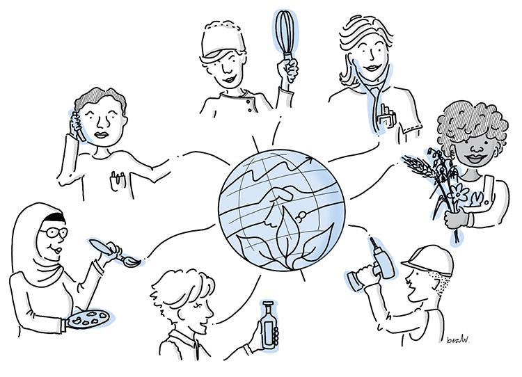 La formation professionnelle doit préparer les apprenti.e.s à un avenir incertain. Il s’agit, entre autres, de se tourner vers le développement durable. Le changement climatique, les migrations et les inégalités croissantes représentent des enjeux sociaux majeurs qui nous concernent tous. Ils montrent à quel point les processus économiques, sociaux et environnementaux sont étroitement liés.