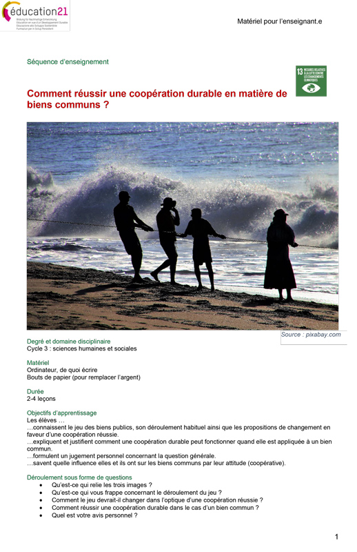 Dans cette séquence d’enseignement, les élèves se penchent sur la question de la réussite d'une coopération durable dans le domaine des biens communs.