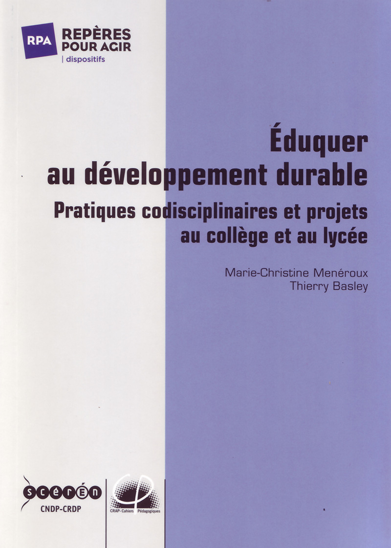 Cet ouvrage explique les bases scientifiques et didactiques de l'EDD et propose également des témoignages d'actions conduites en codisciplinarité dans des établissements français. Il présente diverses approches, tant environnementales qu'économiques et sociales et aborde l'EDD non seulement par le biais des Sciences de la vie et de la terre ou de la géographie, mais aussi par celui de la plupart des autres matières. Les auteurs proposent entre autres dix clés qui aideront les enseignants à organiser de futurs projets au sein de leur établissement. Cet ouvrage s’adresse avant tout aux enseignant-e-s soucieux d’intégrer l’EDD dans leur enseignement. Chaque matière a son approche, mais cet ouvrage permettra aux enseignant-e-s de réunir leurs visions dans un enseignement interdisciplinaire et de trouver des pistes pour travailler ensemble. Les témoignages, bien que typiquement français, sont malgré tout adaptables au contexte suisse. Par exemple, l’organisation d’une journée EDD, une semaine « collecte de déchets » ou un projet sur toute l’année pourront donner des pistes de travail. Selon les auteurs, « éduquer au DD, c’est d’abord permettre à l’élève de réfléchir, agir pour lui, mais aussi pour son entourage, pour la planète aujourd’hui et demain ».