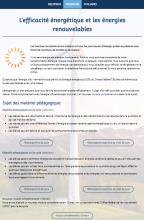 Modules d'enseignement sur le thème de l'efficacité énergétique et des énergies renouvelables. Les thèmes suivants sont abordés :