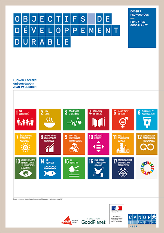 Proposé par le Réseau Canopé et la Fondation GoodPlanet, ce dossier propose une approche pédagogique originale en vue d’étudier les 17 Objectifs de développement durable (ODD) tels qu’ils ont été définis par l’Assemblée générale des Nations Unies en 2015, dans l’Agenda 2030. Le dossier s’appuie sur un ensemble de 17 photographies – présentées sous forme de posters, assorties chacune d’un titre, d’une légende et d’un texte d’accompagnement – qui illustrent chacune un ODD. Les ODD sont des axes précieux pour mettre en lumière les interdépendances, tout en élaborant des réponses transversales aux défis complexes que traverse le monde. 4 thématiques ont été privilégiées: Garantir une éducation de qualité pour toutes et tous, Nourrir durablement une population croissante, Lutter contre le réchauffement climatique et Préserver la biodiversité de la planète. Pour chacune une description détaillée et progressive en 4 étapes est proposée: Décrire et se questionner, Rechercher des informations et argumenter, Relier les posters entre eux et constituer une rosace des ODD, et Débattre pour agir. Excellente ressource invitant avec doigté et beaucoup de liens à explorer les enjeux actuels.
