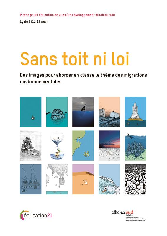 Ce dossier pédagogique est construit autour de 15 images réalisées par des étudiant-e-s de graphisme de l'école cantonale d'arts du Valais (ECAV) dans le cadre d'un concours sur les migrations environnementales. Le dossier pédagogique contient une introduction thématique proposant une information de base sur la thématique des migrations environnementales, ainsi que ses principaux enjeux et trois activités clé-en-main s'appuyant sur les images.