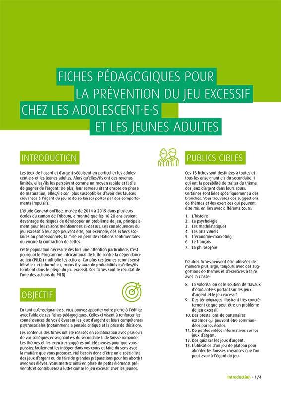 Fiches pédagogiques pour la prévention du jeu excessif chez les adolescent·e·s et les jeunes adultes