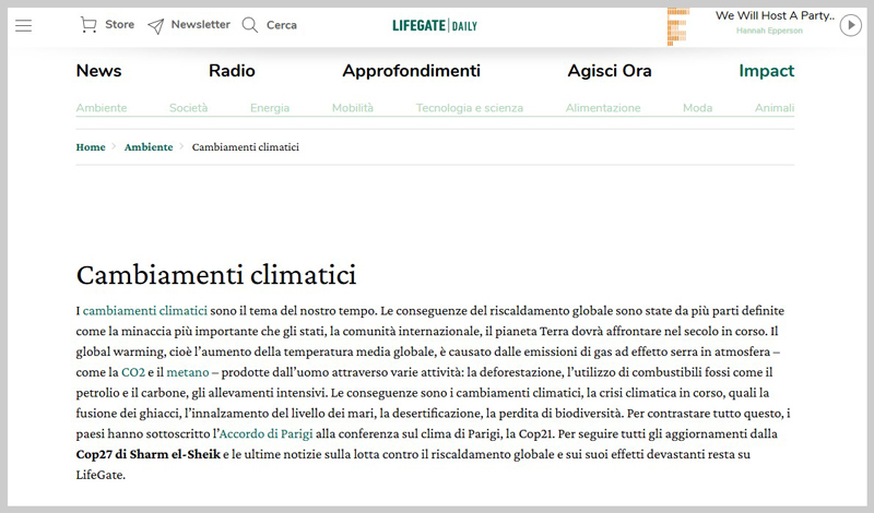 Il fumetto permette di affrontare il tema della protezione del clima, delle possibili azioni senza nasconderne le difficoltà, con protagonista Luca Mercalli che, accompagnando Gaia, un'adolescente curiosa e interessata, in un viaggio nel futuro, mostra come diventerà la nostra terra se non invertiamo subito la rotta.Educazione agli obiettivi di sviluppo sostenibile