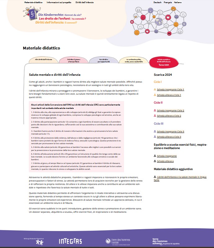 Con un tema centrale che cambia ogni anno, Integras, Terre des Hommes Svizzera e la Fondazione Villaggio Pestalozzi per bambini collaborano per produrre un dossier sul tema dei diritti dei bambini. I materiali proposti sono disponibili per tutti i cicli della scuola dell’obbligo.Passeggiate partecipative