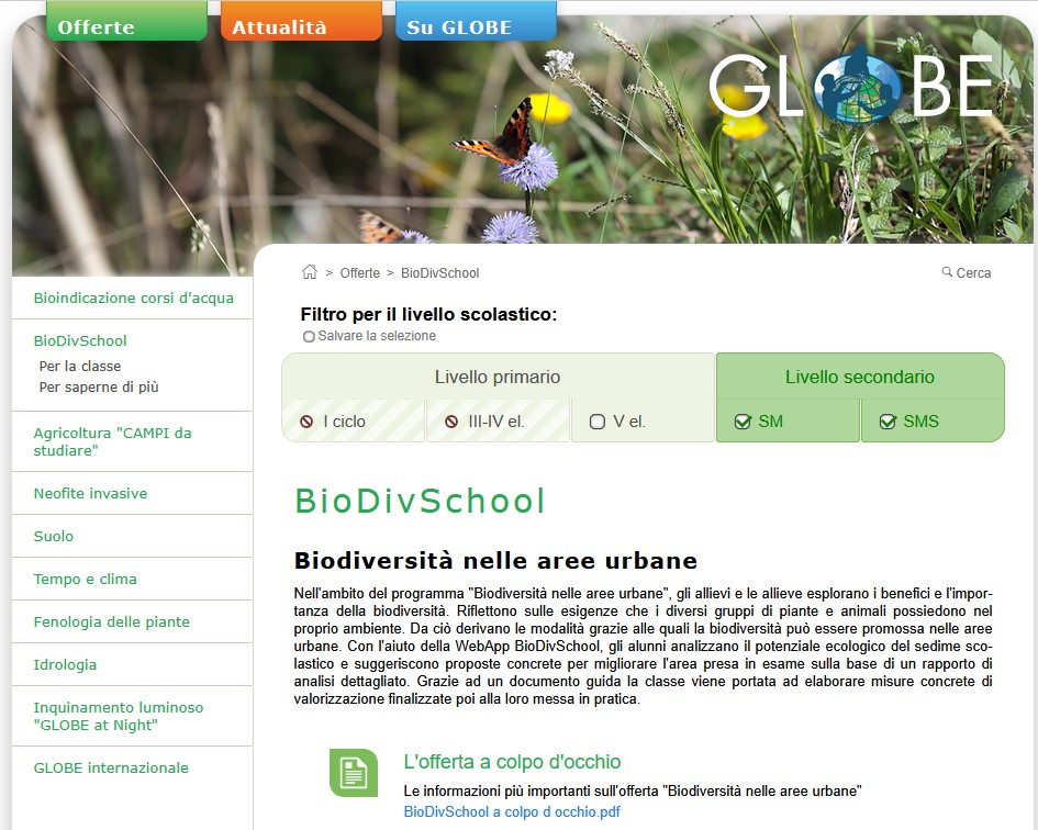Oltre a idee didattiche per introdurre il tema della biodiversità, l’offerta comprende una web app per analizzare lo stato dell’area scolastica. Sulla base dei risultati, le allieve e gli allievi elaborano proposte di miglioramento e, se possibile, le realizzano.Uscire, scoprire e vivere (PDF)