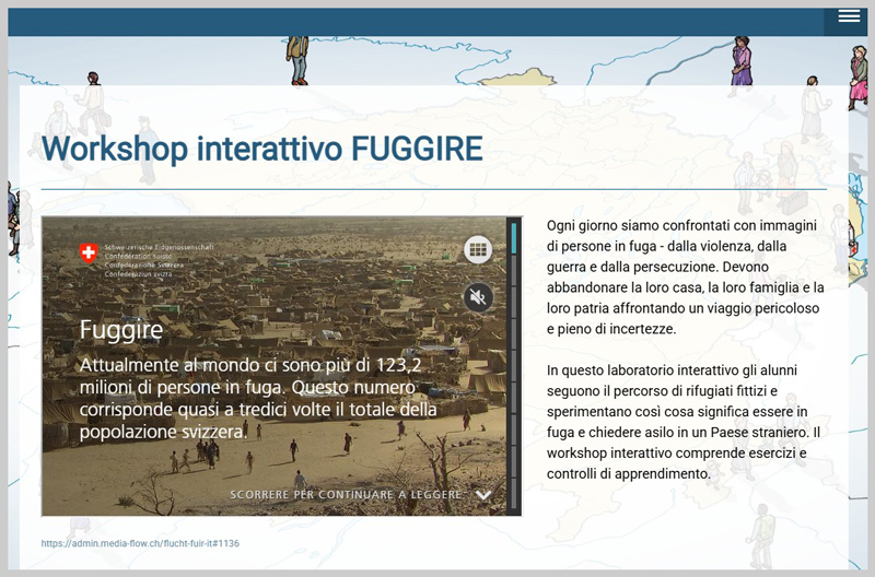 "Regole in guerra" si occupa di guerra, fuga e migrazione, nonché delle regole del diritto internazionale umanitario. Giochi, esercizi e lavoro di gruppo aiutano gli studenti ad acquisire conoscenze sui motivi della fuga, sulle regioni di conflitto e sul diritto umanitario internazionale, ad abbattere i pregiudizi nei confronti dei rifugiati e a sviluppare l'empatia. Vi è pure un sito sulla gestione dei conflitti.Sotto il velo: la mia vita con il velo per le strade di Roma