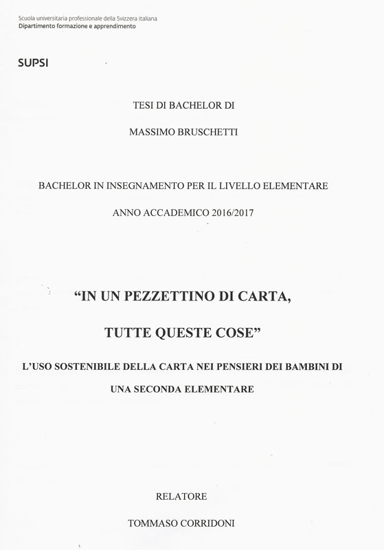 Questo lavoro di Bachelor presenta un percorso sulla carta e il suo consumo pensato in un’ottica di sviluppo sostenibile con l’obiettivo di favorire la costruzione di un pensiero sostenibile in un bambino di seconda elementare. Basandosi su diverse esperienze svolte dai bambini sul riutilizzo e il riciclo della carta e ad uno sguardo su come viene fatta e come si smaltisce, l’insegnante ha potuto raccogliere le concezioni dei bambini sul ciclo di vita della carta e osservarne quantitativamente e qualitativamente l’evoluzione.Un gomitolo di plastica