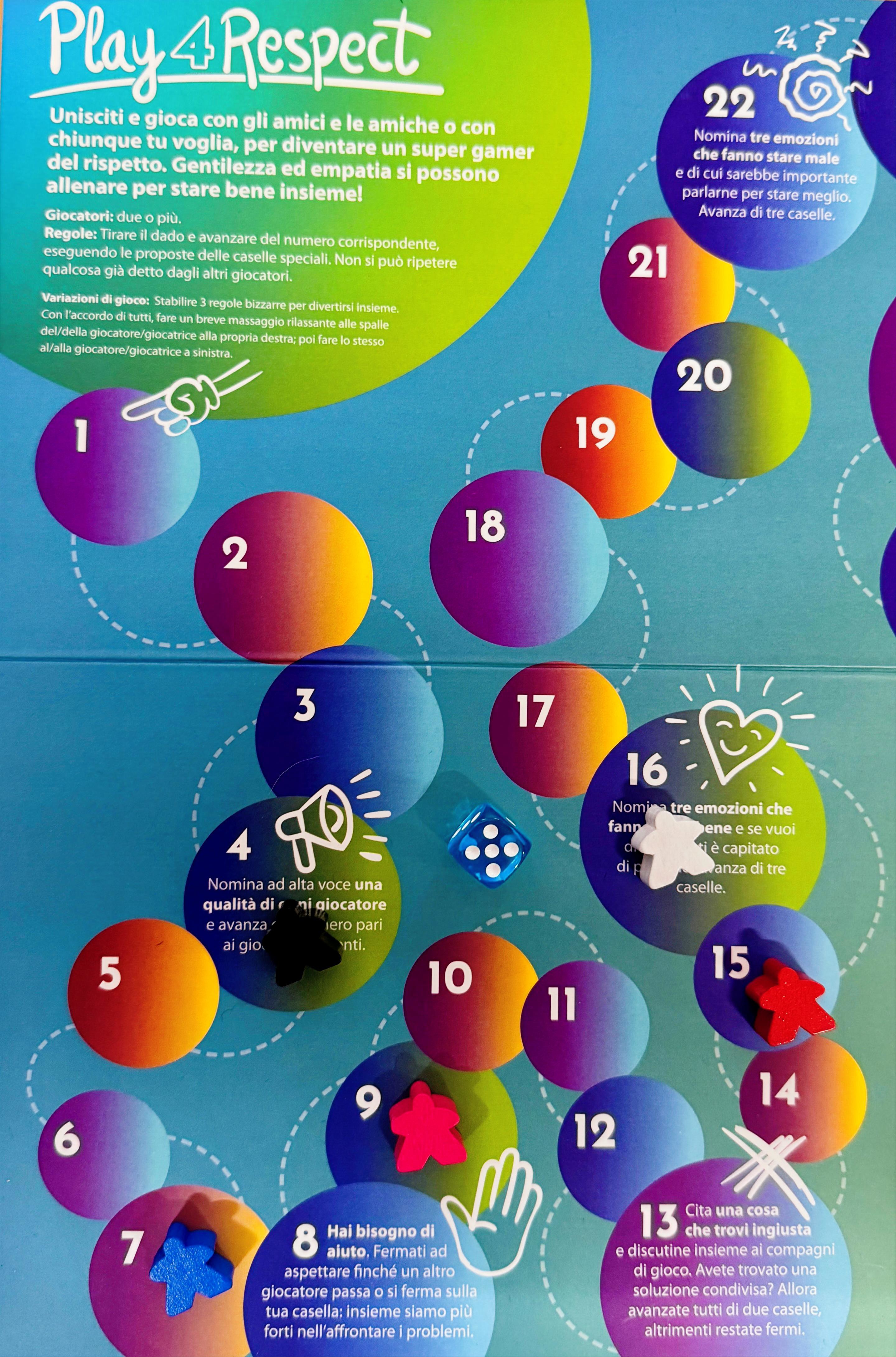 Gioco educativo che promuove la riflessione sulle dinamiche relazionali e sul benessere collettivo. Contribuisce all’ESS lavorando sulla dimensione sociale, sviluppando competenze come gentilezza, empatia, partecipazione e collaborazione. Da integrare in un percorso ESS più ampio.Partecipa! Cambia il tuo mondo in quattro passi