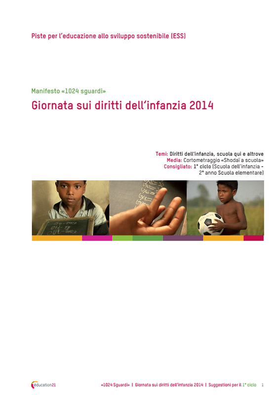 Dossier docenti per tutti i cicli e serie di schede per allievi nell’ambito del progetto “i diritti del fanciullo a scuola” per promuovere la convenzione dell’ONU sui diritti dell’infanzia (CDI) in Svizzera in occasione della giornata dei diritti dell’infanzia (20 novembre). I suggerimenti per il docente permettono di introdurre la tematica in qualunque momento e di preparare delle attività da svolgere durante la giornata del 20 novembre. Le attività sono elaborate in maniera differenziata per ogni ciclo della scuola dell’obbligo e sono adattate alle differenti regioni linguistiche, cioè la Svizzera italiana, romanda e tedesca. La loro elaborazione è frutto della collaborazione tra IDE (esperto in diritti del bambino) ed éducation21 (esperto in scienze pedagogiche). Ogni anno, le schede trattano di un tema differente che viene toccato in due o tre unità didattiche: i cambiamenti climatici (2018), la diversità (2017), il bullismo a scuola (2016), il diritto alla libertà d’espressione (2015) e il diritto all’istruzione e all’educazione (2014).
