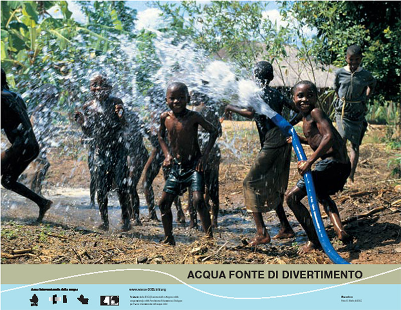 Un fotolinguaggio prodotto dalla Fondazione Educazione e Sviluppo, su mandato della DSC, per l'anno internazionale dell'acqua 2003. Una serie di manifesti dedicati all'acqua nel mondo con un dossier contenente dei suggerimenti didattici per l’utilizzo in classe e delle informazioni supplementari. Le immagini abbinate a uno slogan ciascuno fanno immergere gli allievi nei diversi aspetti del tema: Acqua un bene prezioso | Acqua sempre più rara |Acqua potabile per tutti! | Acqua fonte di cibo | Chi troppo, chi niente | Acqua fonte di divertimento | Acqua fonte di fatica | A chi appartiene l'acqua? | L’acqua unisce. | Acqua fonte sacra. I manifesti sono disponibili unicamente in formato PDF da proiettare o stampare.