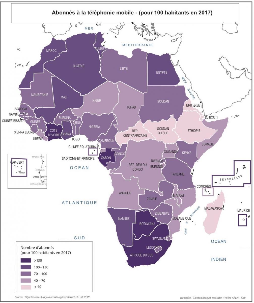 Fonte: Carte. Combien d’abonnés à la téléphonie mobile en Afrique ? (01.2020)Per molti africani, lo smartphone è ormai importante quasi quanto l'elettricità, l'acqua o i servizi igienici. Secondo l'istituto di ricerche di mercato britannico Ovum, quasi 294 milioni di africani hanno usato uno smartphone nel 2016, e il loro numero è raddoppiato negli ultimi tre anni. Entro il 2021, questo numero dovrebbe superare i 900 milioni.