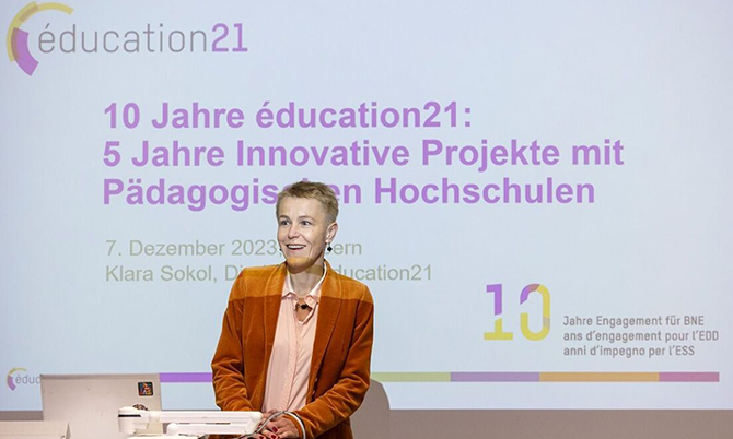 éducation21 ha trasmesso e discusso il suo modo attuale di intendere l’ESS a un vasto pubblico, composto da insegnanti, docenti ASP, coordinatrici e coordinatori della Rete delle scuole21 ecc. sotto forma di corsi di formazione, conferenze e con la redazione di articoli specialistici su temi quali «Service Learning» o «eco-ansia». Ha inoltre apportato le sue competenze in materia di ESS in progetti esterni e interni. In questo modo, éducation21 partecipa al dibattito dinamico che trasforma e consolida il ruolo dell’ESS nel paesaggio educativo.