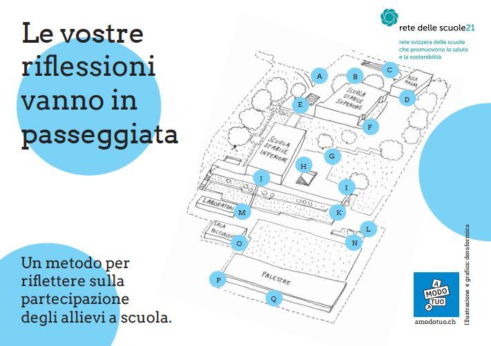Una passeggiata all'aperto è il terreno ideale per la nascita e l'esplorazione di nuove idee: combinare le gambe con la testa per muoversi - letteralmente e figurativamente. E funziona anche per gli adulti!  Lo strumento è disponibile sotto forma di 3 passeggiate: "Le vostre idee vanno in passeggiata" per gli allievi nei cicli 1-2 e per quelli nel 3° ciclo e secondario II; per tutti gli insegnanti e i professionisti della scuola invece è riservata la proposta "Le vostre riflessioni vanno in passeggiata". Tutti i materiali sono scaricabili gratuitamente.